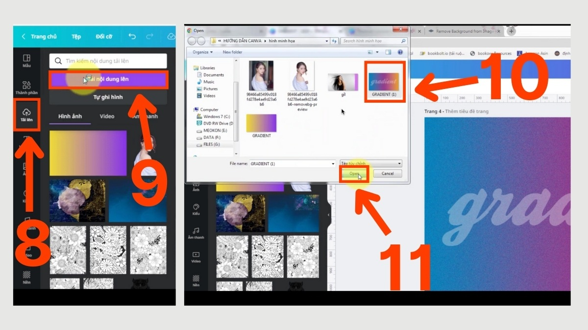 Trước tiên, bạn tạo một text box với font chữ mong muốn, sau đó đặt chữ lên một nền gradient. Tiếp theo, bạn xuất file ra ảnh PNG, tải lại vào Canva và sử dụng tính năng Xóa nền (Background Remover) – một tính năng chỉ có trên Canva Pro.