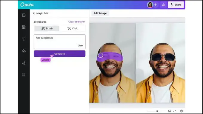 Bạn chỉ cần quét vùng muốn chỉnh sửa và nhập mô tả. AI của Canva sẽ tự động xử lý phần còn lại.