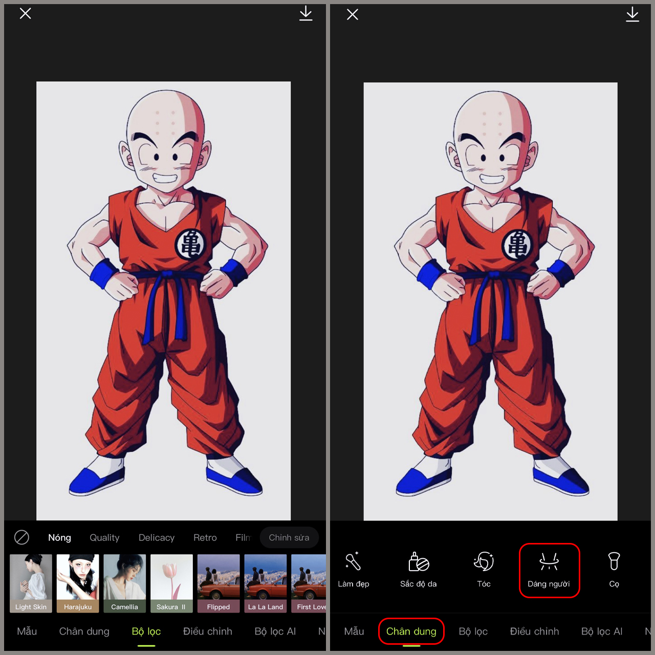 Bước 2: Chọn công cụ chỉnh Dáng người
