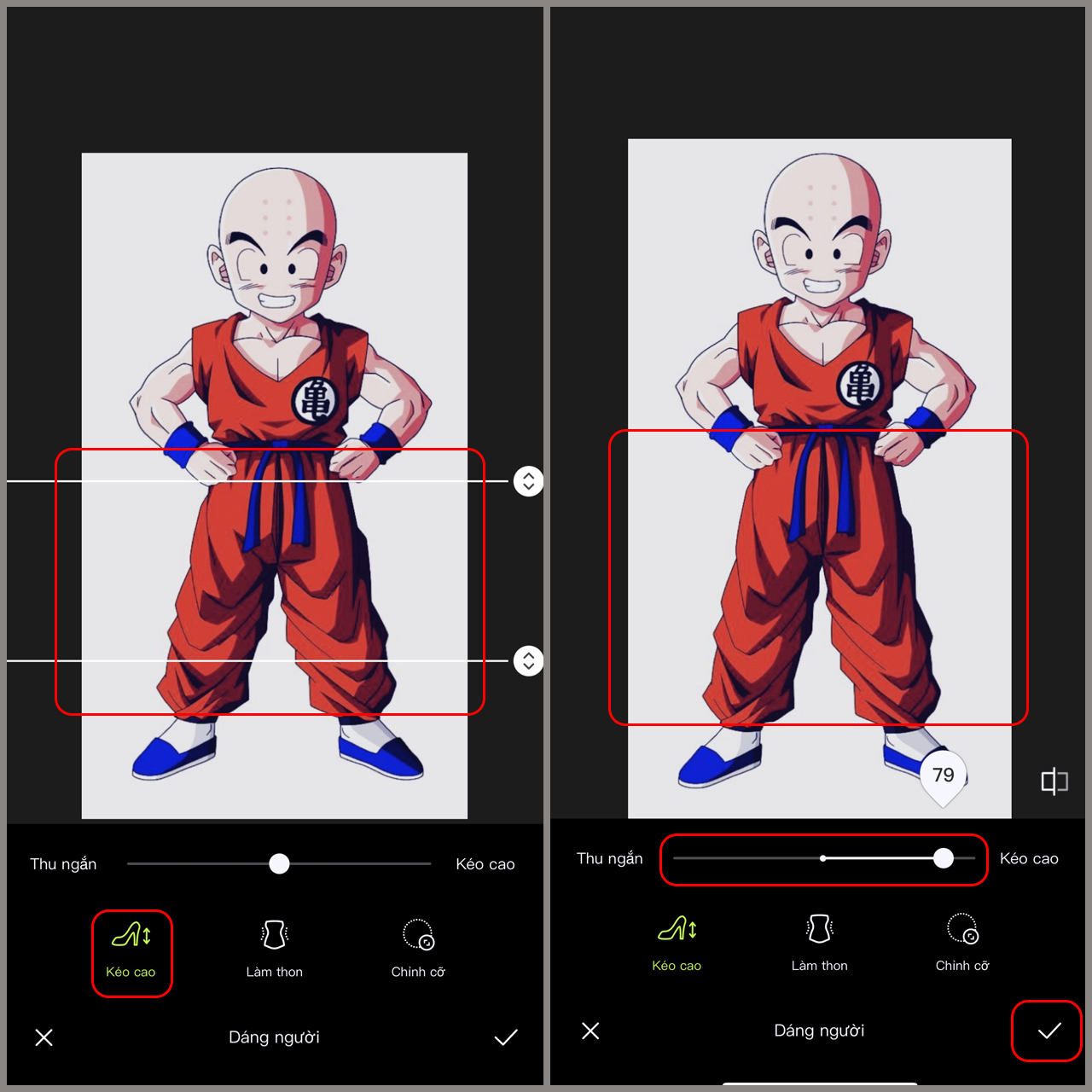 Mẹo nhỏ: Nên chọn ảnh chụp đứng thẳng, toàn thân hoặc nửa thân dưới để việc kéo chân đạt hiệu quả tốt nhất.