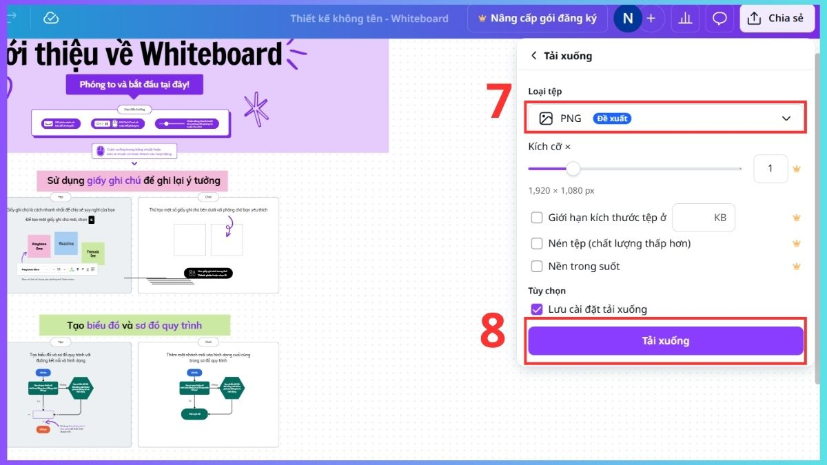 Khi nâng cấp lên Canva Pro, Canva Whiteboard sẽ mở rộng khả năng thiết kế với kho tài nguyên cao cấp, mẫu chuyên nghiệp và khả năng xuất file chất lượng cao, cực kỳ phù hợp cho công việc và giảng dạy.
